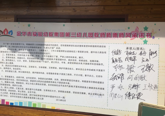 宣誓后,老師們陸續在師德師風承諾書上簽名,立志成為高素質、品德優的合格教師,牢記誓言、不忘初心,為了共同的幼教事業奉獻青春和熱情。