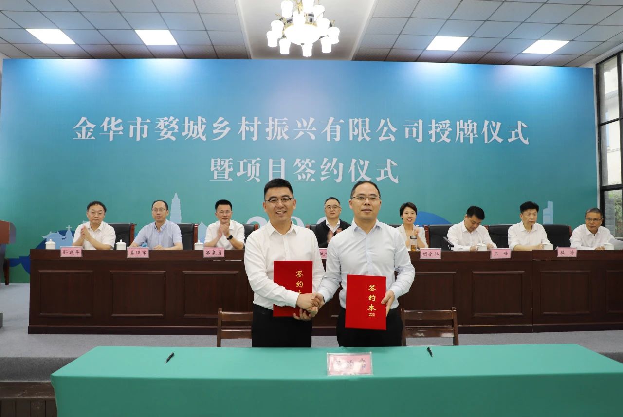 李斌峰為金華市婺城區鄉村振興有限公司成立授牌。市教投公司董事長、總經理陳新根和婺城區農投集團董事長、總經理陳中山簽署戰略合作協議。